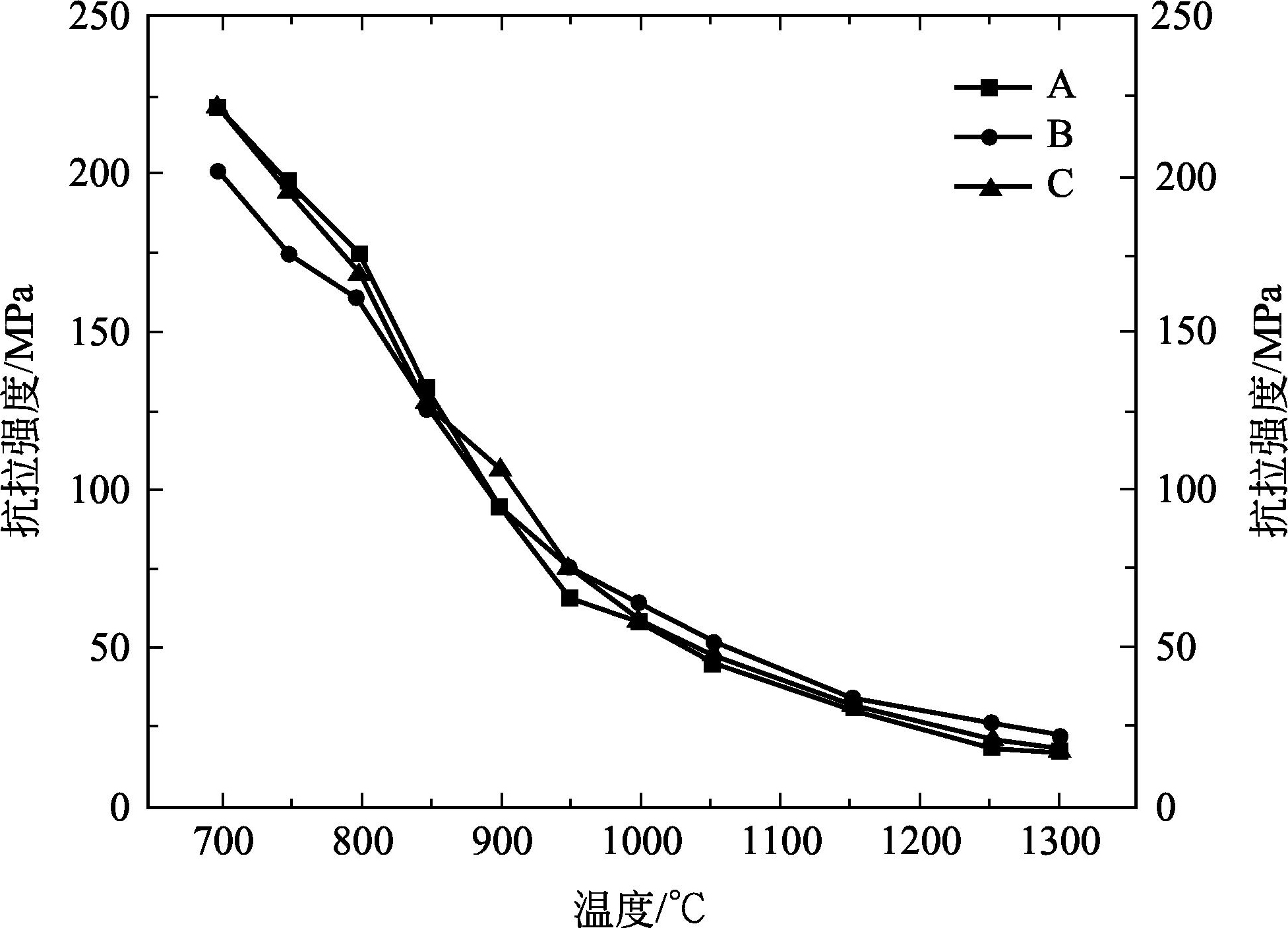 d.各试样在所测温度范围内抗拉强度基本一致,说明Sn含量的不同对其高温抗拉强度没有明显的影响。