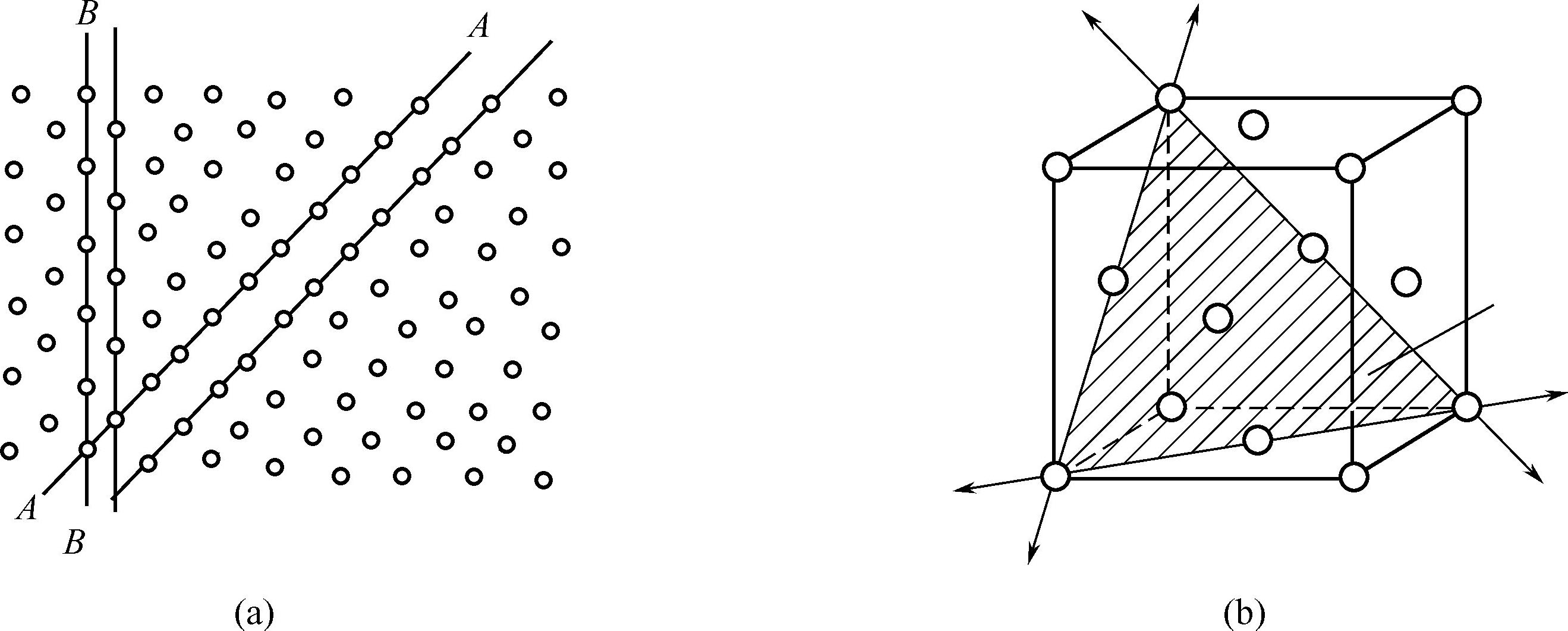 图3-1 滑移面示意图(a)和面心立方晶格的滑移(b) [2]