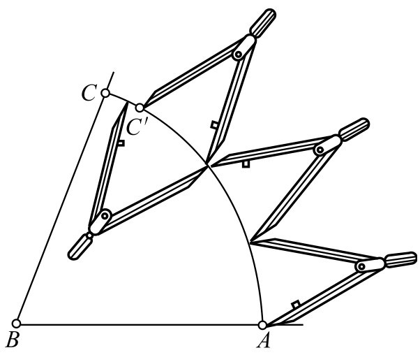 ③连接 B 、3和 B 、4,便为直角∠ ABC 的三等分。