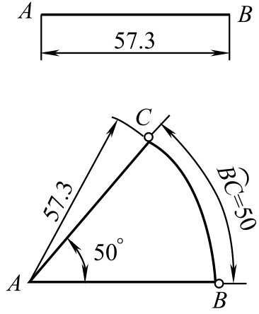 如图2-102所示的近似法。若作一角等于50°,其步骤如下。