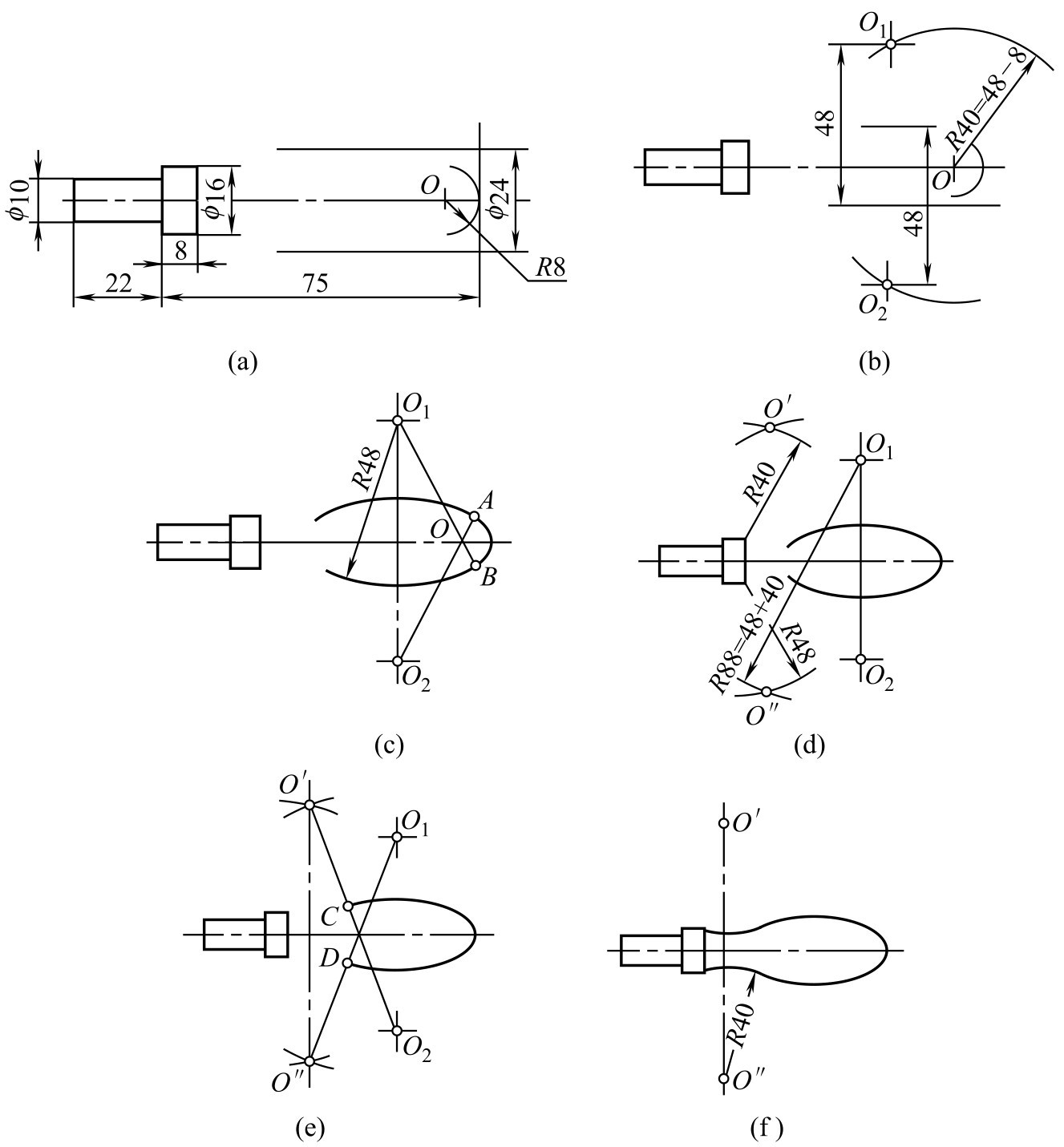 ⑤确定 R 40和 R 48的切点 C 、 D ,如图2-135(e)所示。