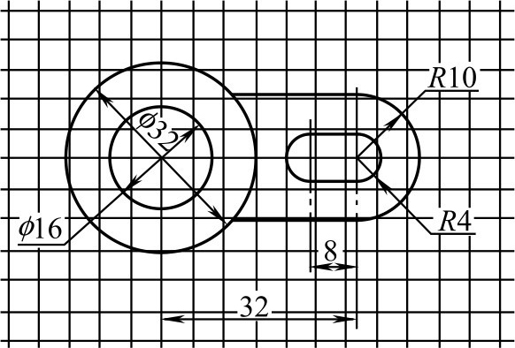 其步骤与仪器绘图的步骤相同。草图图形的大小是根据目测估计画出的,目测尺寸比例要准确。初学徒手绘图,可在方格纸上进行,如图2-141所示。