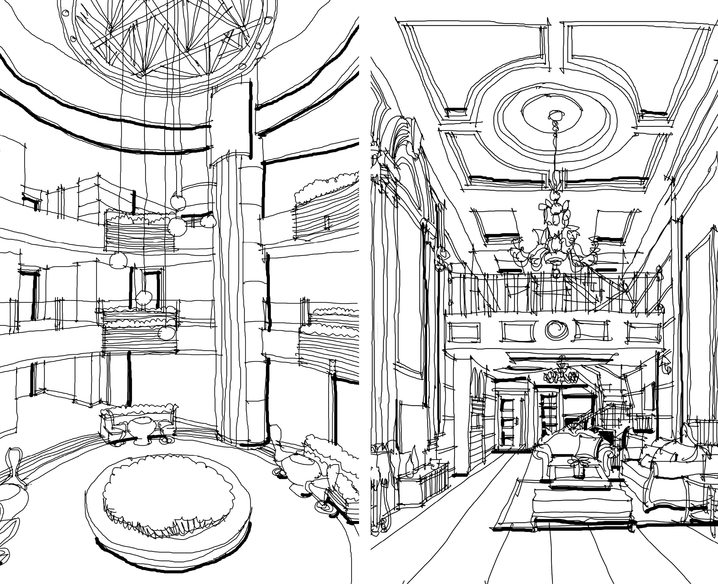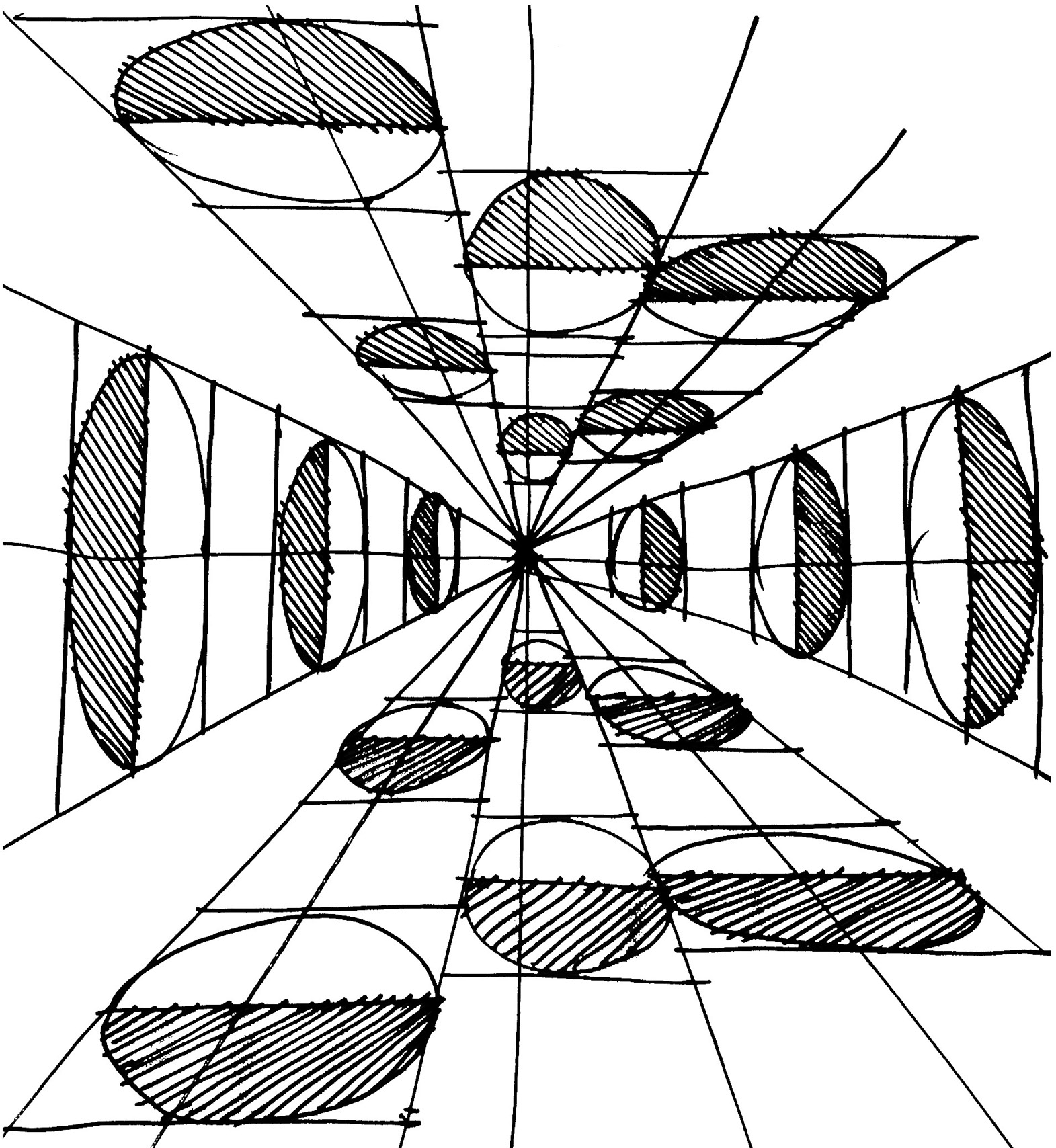 在许多室内外空间中,都暗藏着圆的透视规律,需要在具体绘制过程中结合原理进行观察,找出其特点,最终绘制出准确的图形,表达设计意图。