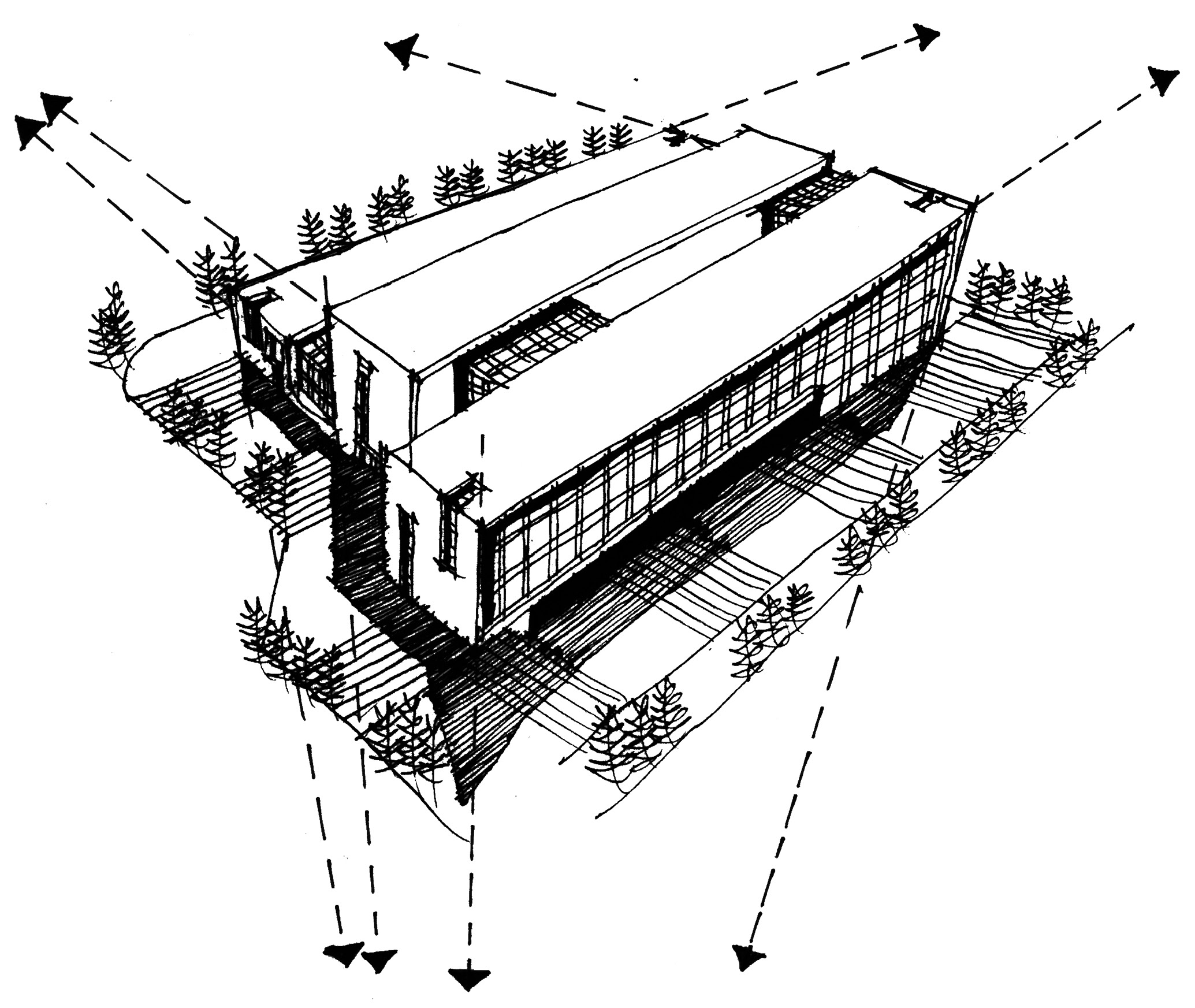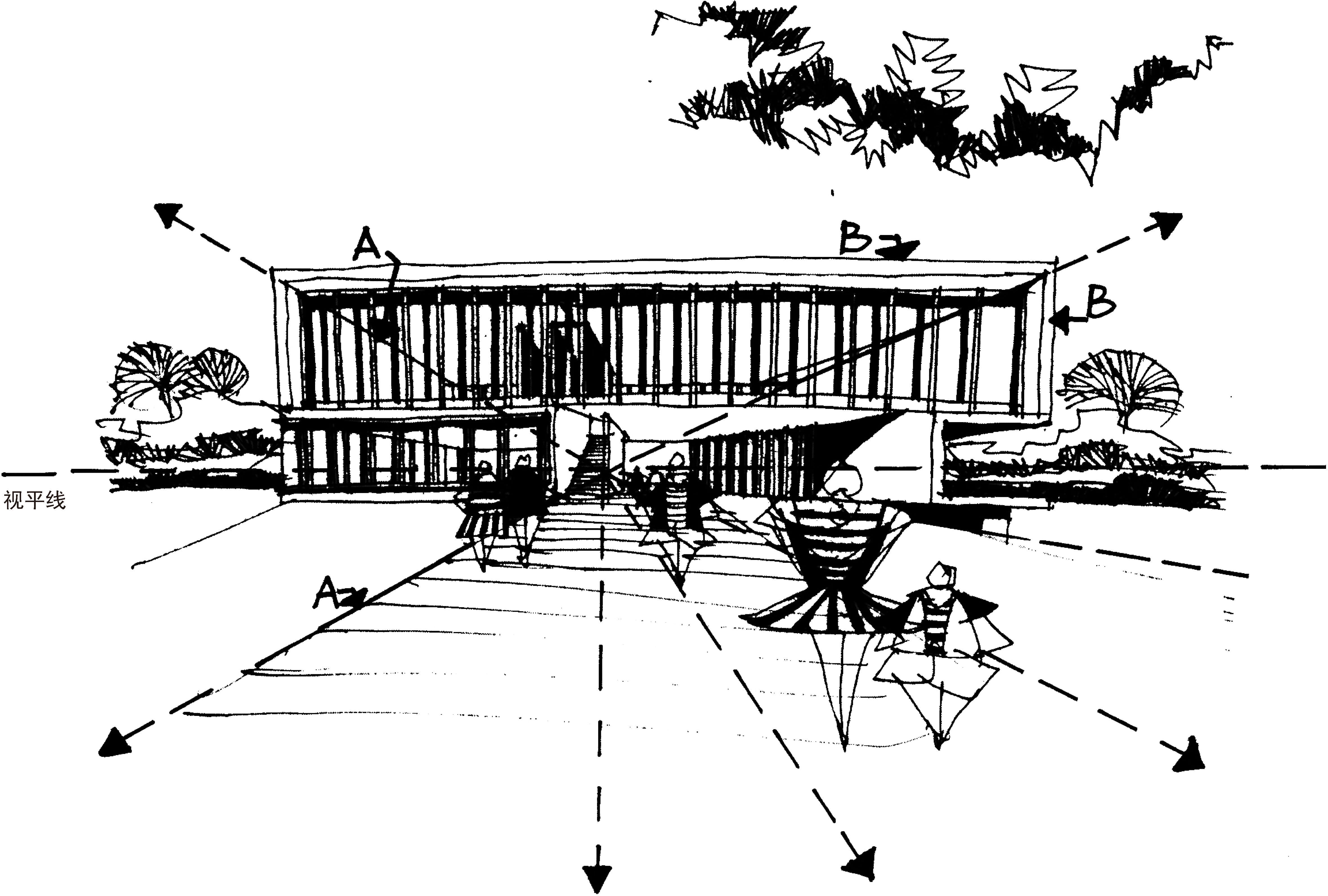 两点透视是景观设计手绘快速表现中最常用的透视方法,其表现出的空间自由、灵动、变化丰富,相较一点透视而言,更符合人们视觉观赏习惯。