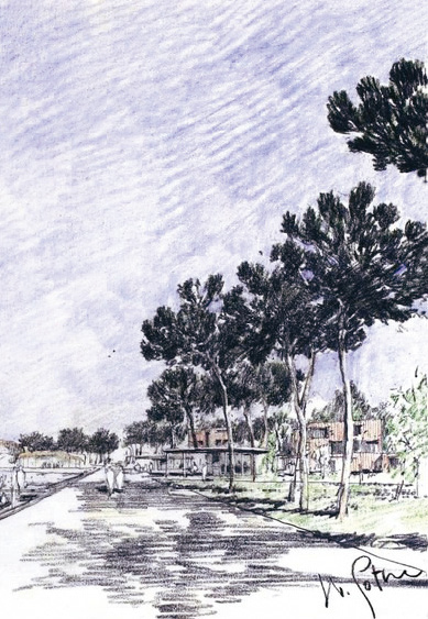 (6)彩铅速写。彩铅是一种介于素描和色彩之间的绘画形式。它的独特性在于色彩丰富细腻,且彩铅相对来说更容易掌握。我们可用不同的力度,用彩铅进行排线,反复上色,从而刻画出如水彩般梦幻、诗意的境界,如果用可溶性彩铅与水彩相结合的方式来做画,并且利用彩色铅笔对水彩的部分再加以细部修正,画面会产生更微妙的感觉。彩铅最大的优点是能够像运用普通铅笔一样自如,同时还可以在画面上表现出笔触来,对于初学者来说作画工具相对简单,便于掌握。彩铅速写的典型特点是使用方便,表现力强。