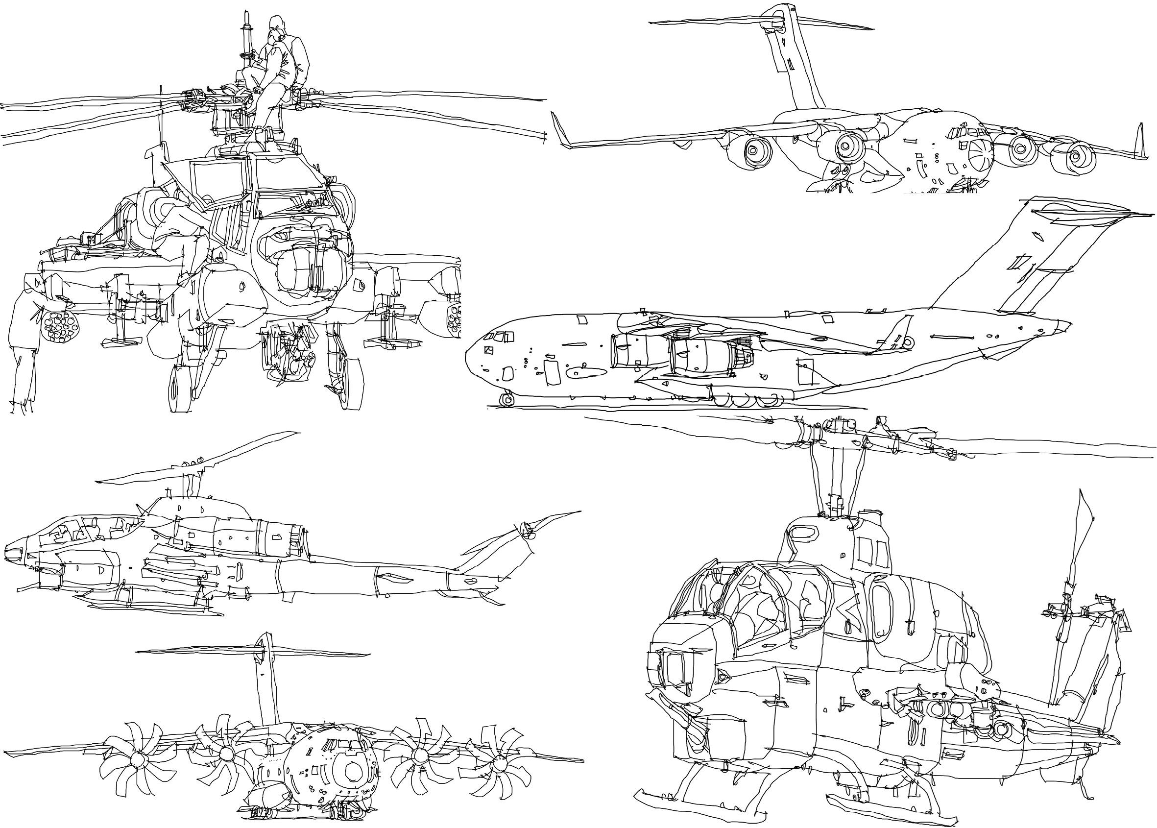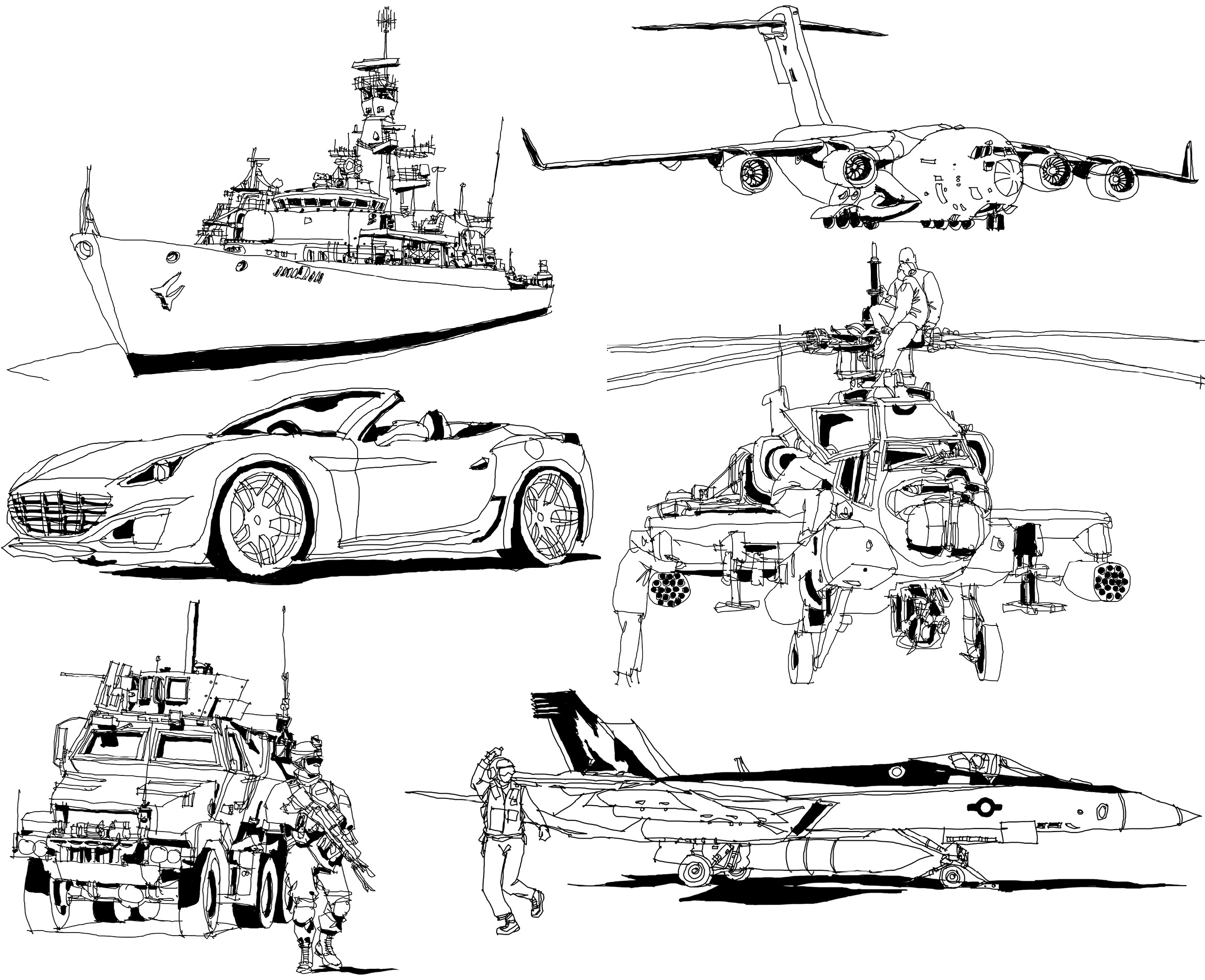 以线条为主的速写,通常要注意以下情况:用线要连贯,中肯朴实,忌断线、碎线;用线要有力活泼,忌死板、轻柔;用线要有变化,刚柔相济,虚实相间;用线要有节奏,抑扬顿挫,起伏跌宕。