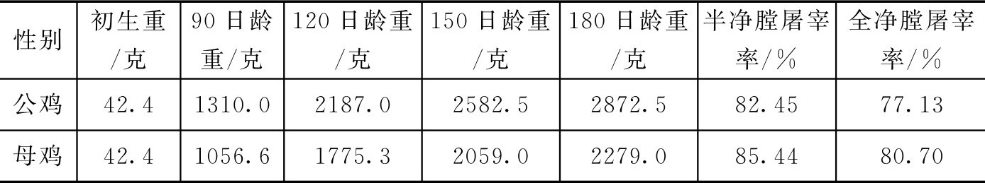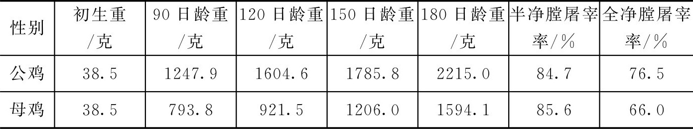 注:屠宰测定的母鸡为开产时的母鸡,公鸡为150日龄。