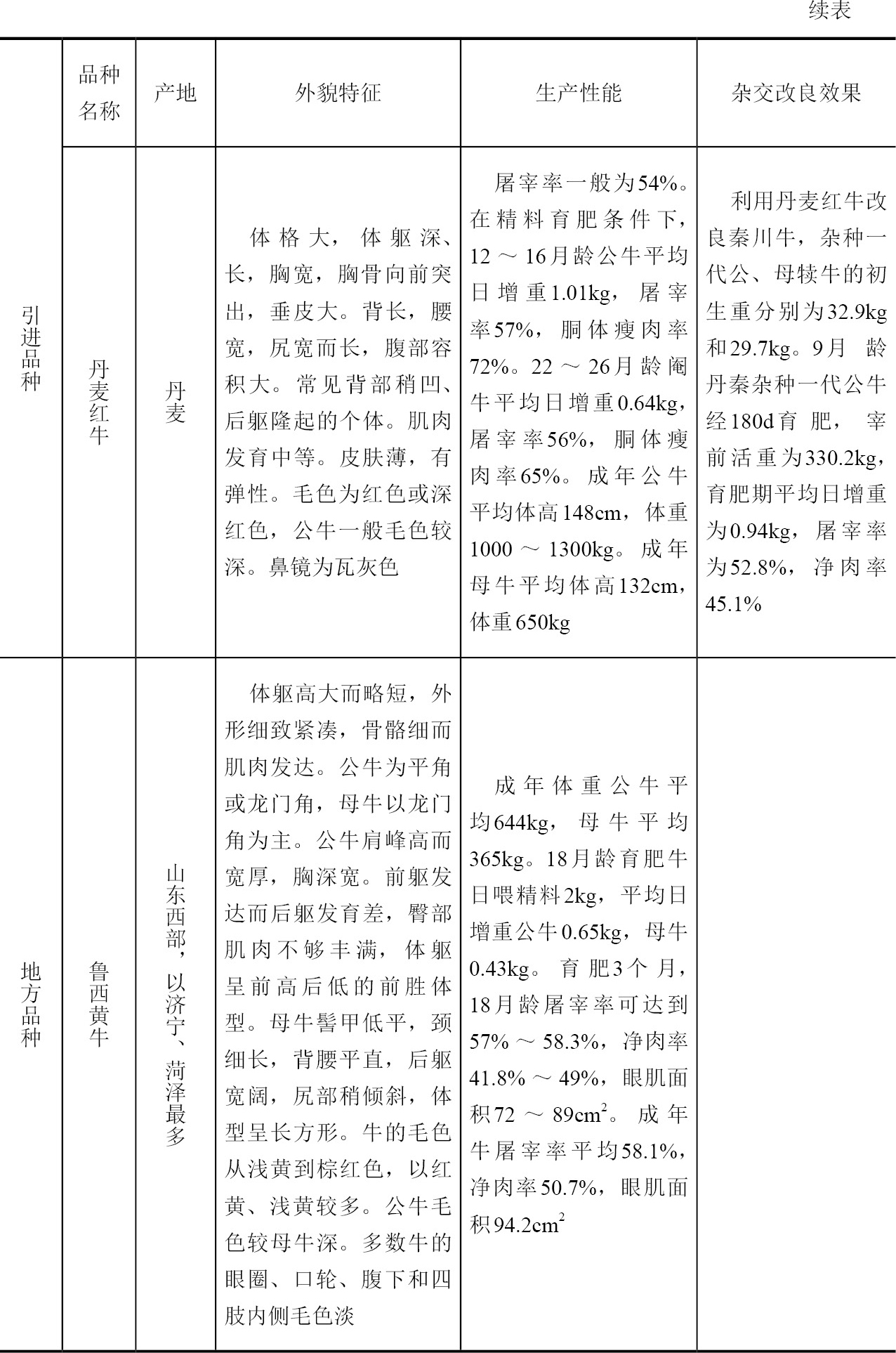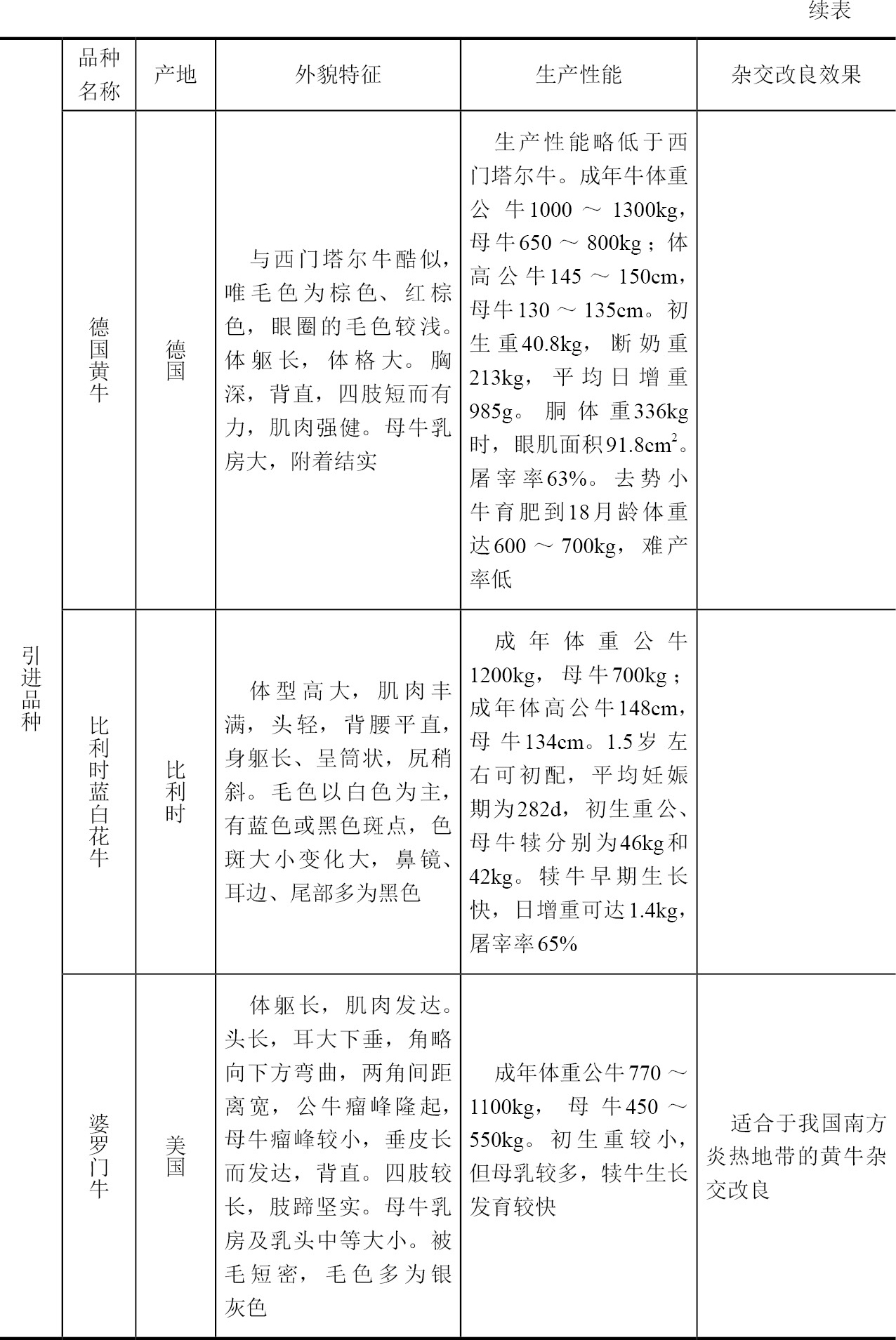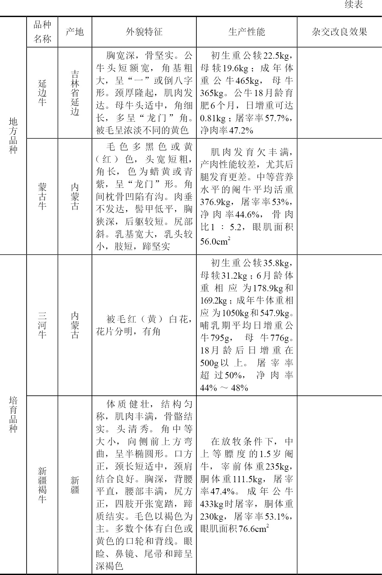 目前,常见的国内外优良肉牛品种见表2-1。在我国饲养较多的是西门塔尔牛、利木赞牛、夏洛来牛、安格斯牛等及其杂交牛(与本地牛的二元或三元杂交)。