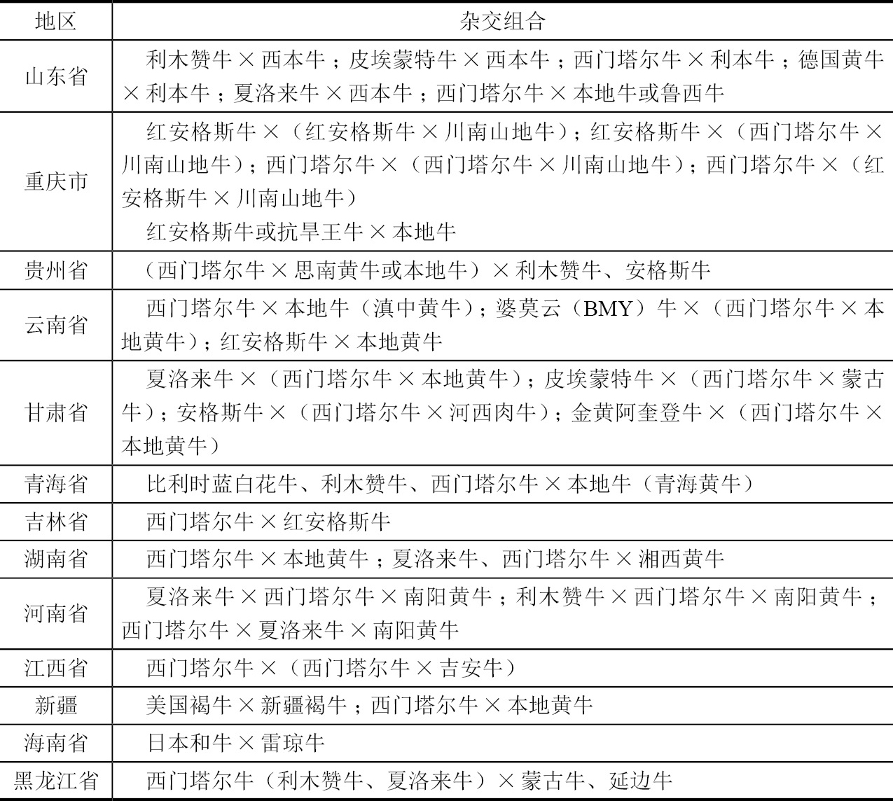 我国主要养牛地区常用的杂交品种组合,见表2-2。