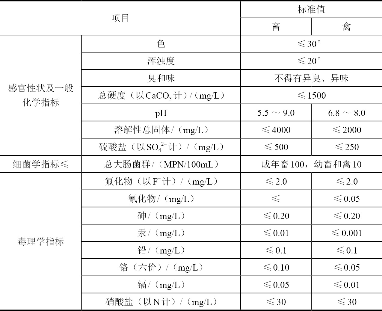 表1-1 畜禽饮用水水质标准(NY 5027—2008)