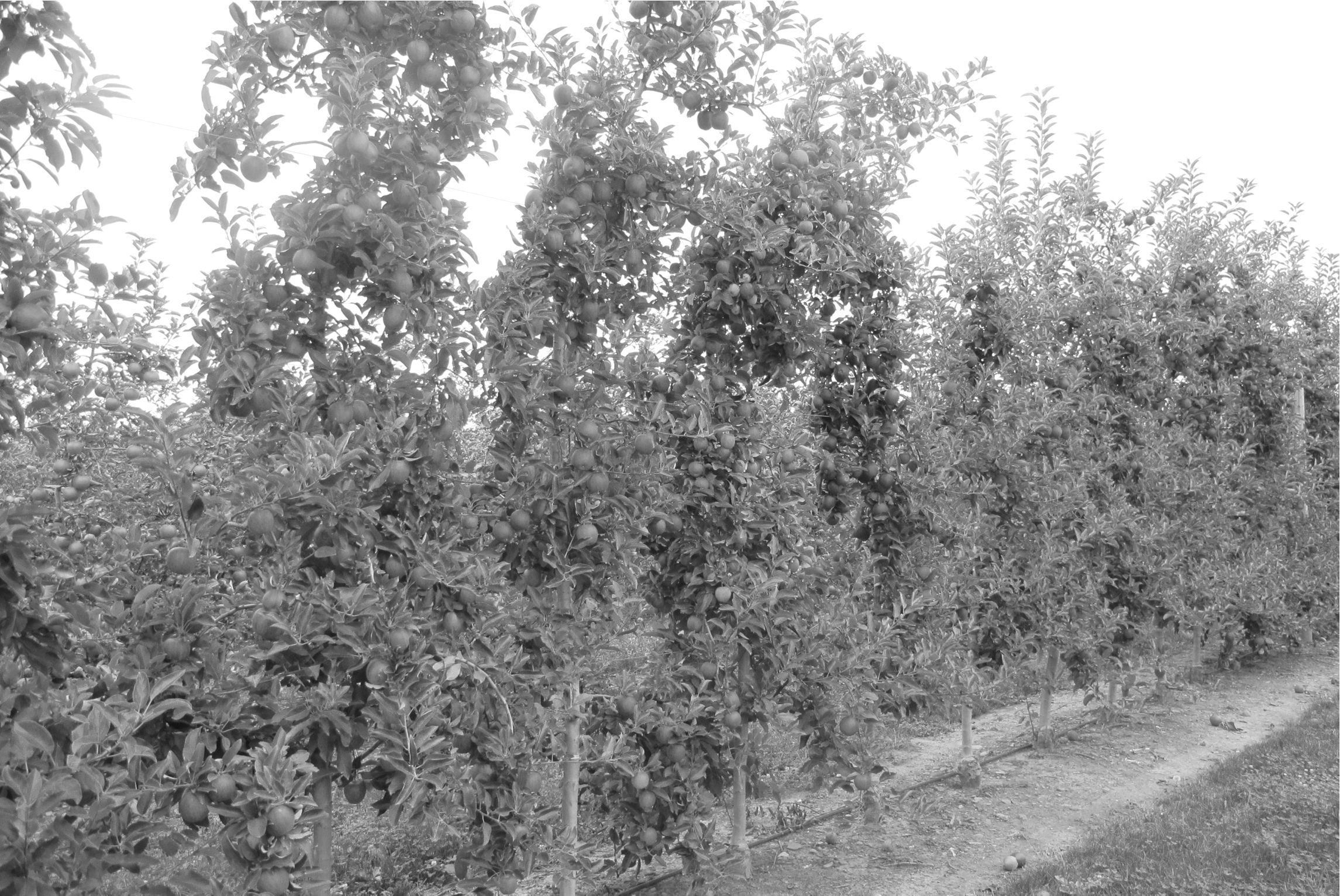 加强和完善标准化良种苗木繁育体系,以国家现代苹果产业技术体系为载体,建立国家苹果良种、良砧研发和标准化苗木繁育体系,以应对我国面临的苹果园大面积更新换代和现代矮砧集约高效栽培制度发展的需求。一是在国家级科研院所建立国家苹果良种、砧木无病毒原种圃;二是在苹果优势产区,依托地方科研院所,分区建立良种、良砧采穗圃和现代苹果标准苗木繁育示范圃(图1-7,彩图);三是扶持建立一批大型商业化苹果苗圃,实行定点生产、专营销售;四是加强苹果苗木生产与流通过程中的检验和检疫管理,有效控制病毒病和危险性、检疫性病虫害的传播和蔓延。