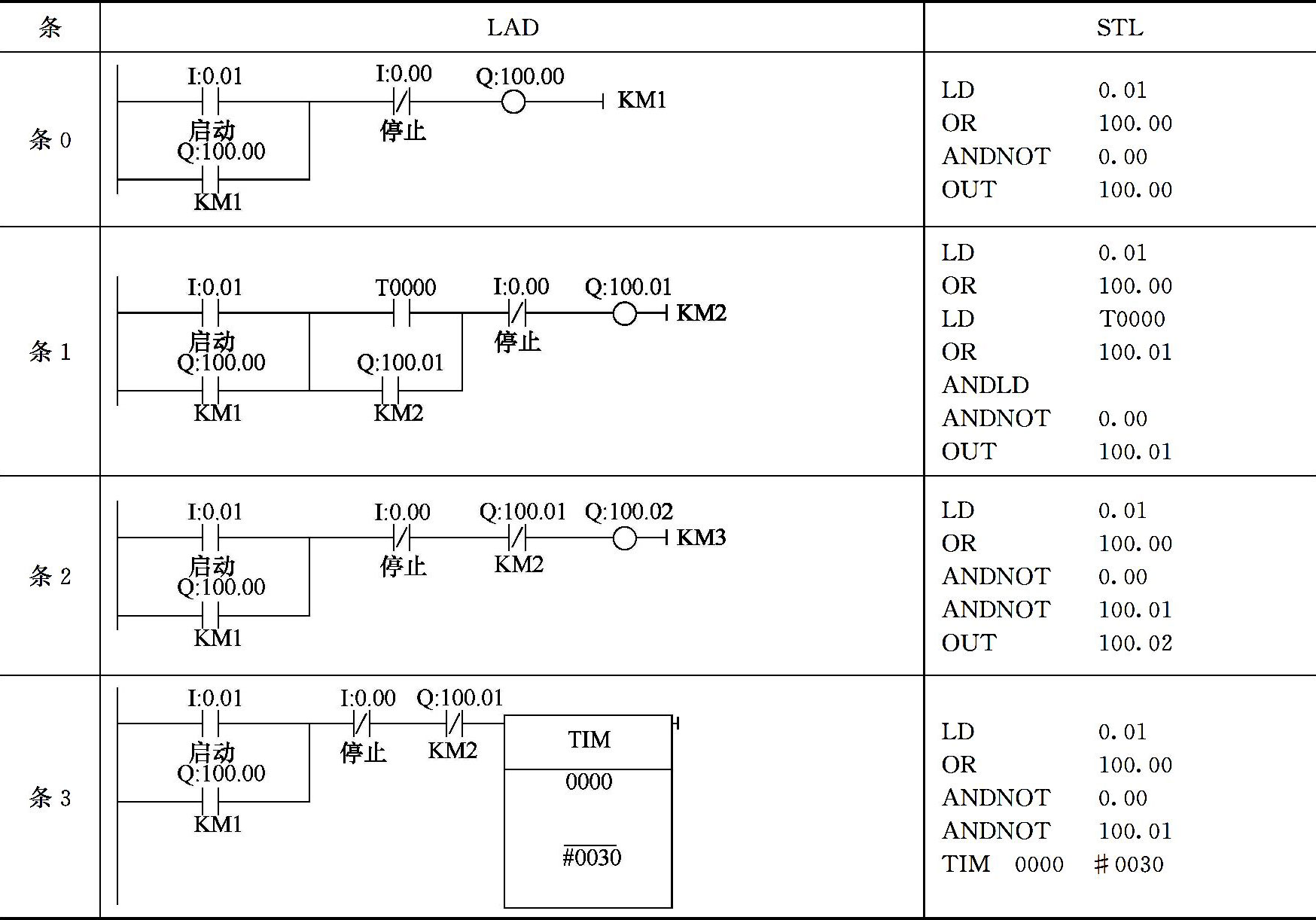 在PLC程序设计中,只要找到控制对象的启动、自锁和停止条件,就可以设计出相应的控制程序。即PLC程序设计的基础是细致地分析出各个控制对象的启动、自保持和停止条件,然后写出控制函数表达式,根据控制函数表达式设计出相应的梯形图程序。