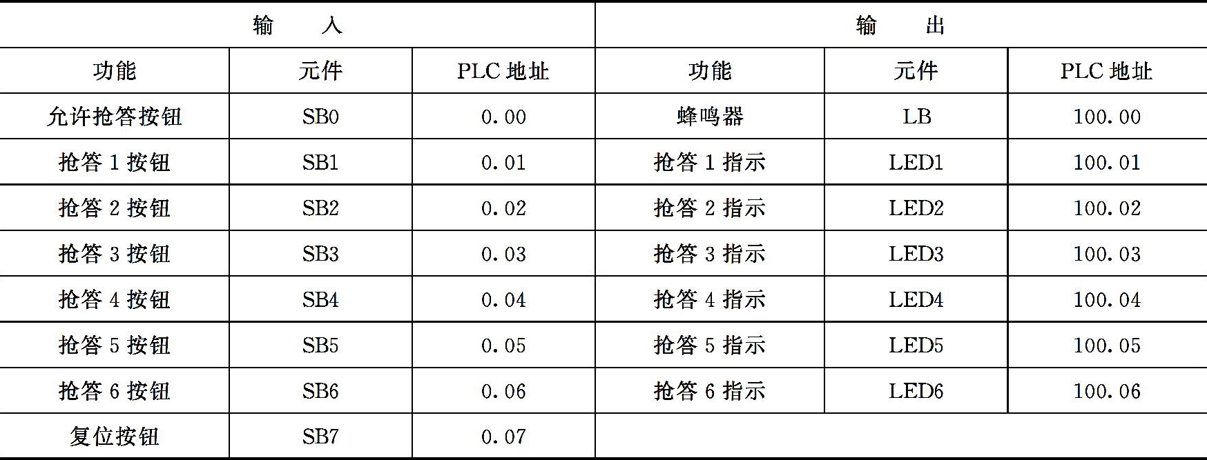 表4-61 简易6组抢答器的输入/输出分配表