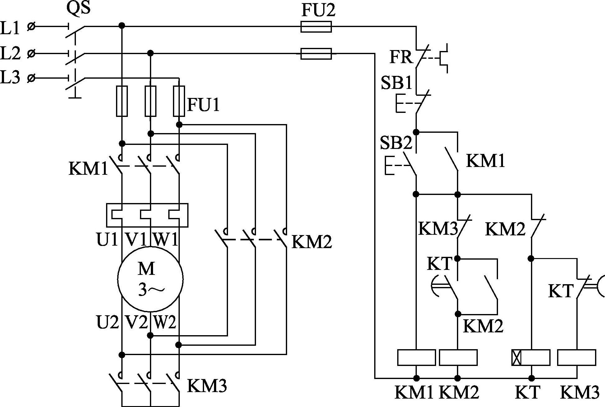 图4-6 传统继电器-接触器星形-三角形