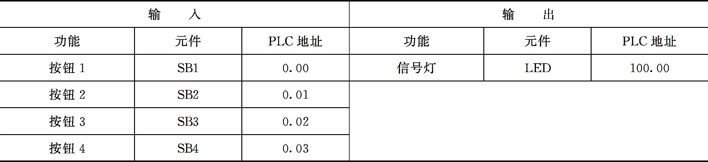 表4-59 用4个按钮控制1个信号灯的输入/输出分配表