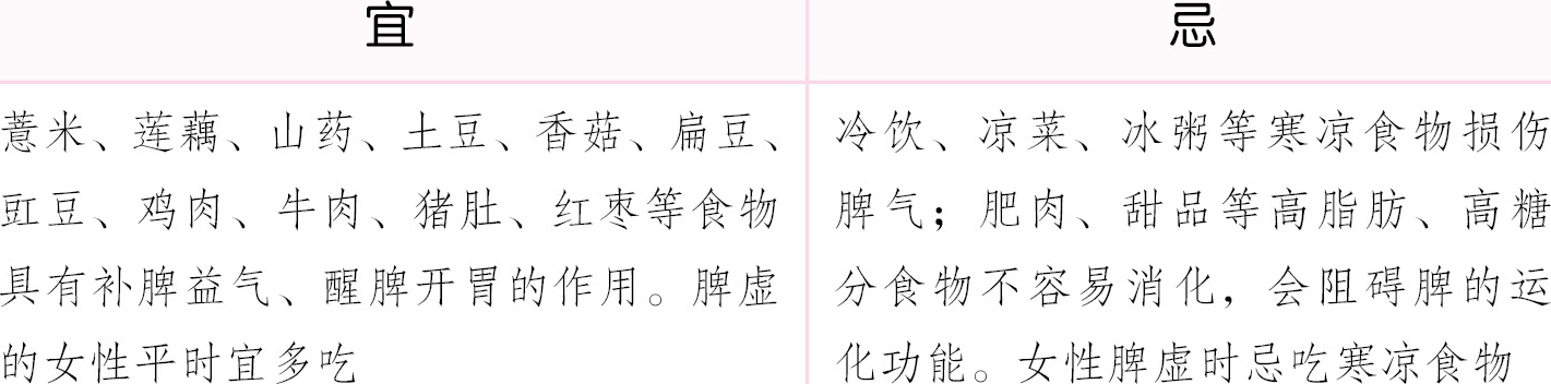 《黄帝内经》中反复强调“甘入脾”,也就是说脾主甘味,因此脾胃虚弱的女性平时可适量食用甘味食物,以补益脾胃。中医所说的甘味食物,不仅指食物的口感有点甜,更重要的是其具有补益脾胃的作用。甘味食物,首推红枣和山药,其他如粳米、小米、糯米、豇豆、黄豆、胡萝卜、红薯、土豆、南瓜、桂圆等也属于甘味食物。