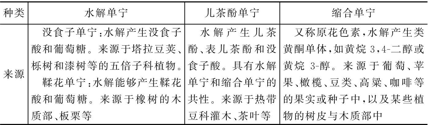 单宁的主要种类和来源见表2-38。