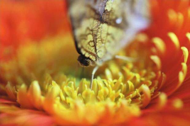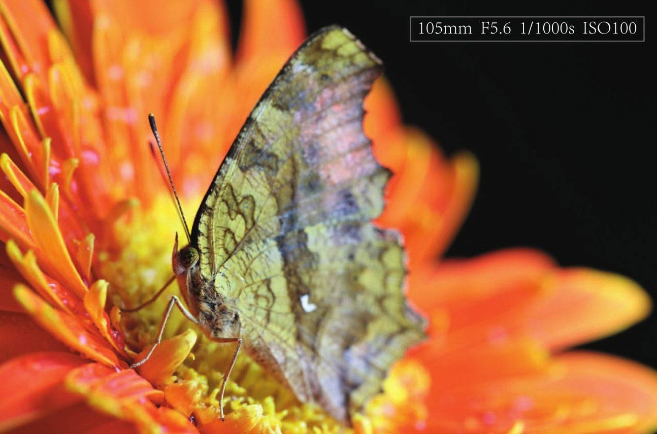 没有使用对焦锁定功能,对焦点位于蝴蝶的翅