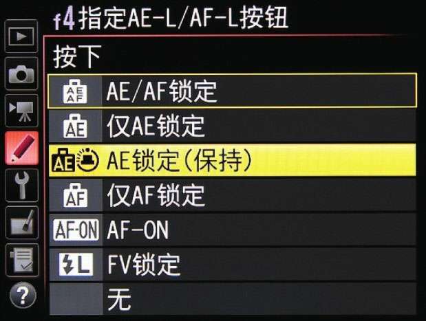 按照右侧的菜单操作,选择“AE锁定(保持)”选项,即使释放AE-L/AF-L按钮,相机也会以锁定的曝光参数进行拍摄,再次按下该按钮才取消锁定的曝光参数。使用此方法的好处在于,在重新构图时,方便切换对焦点的位置。