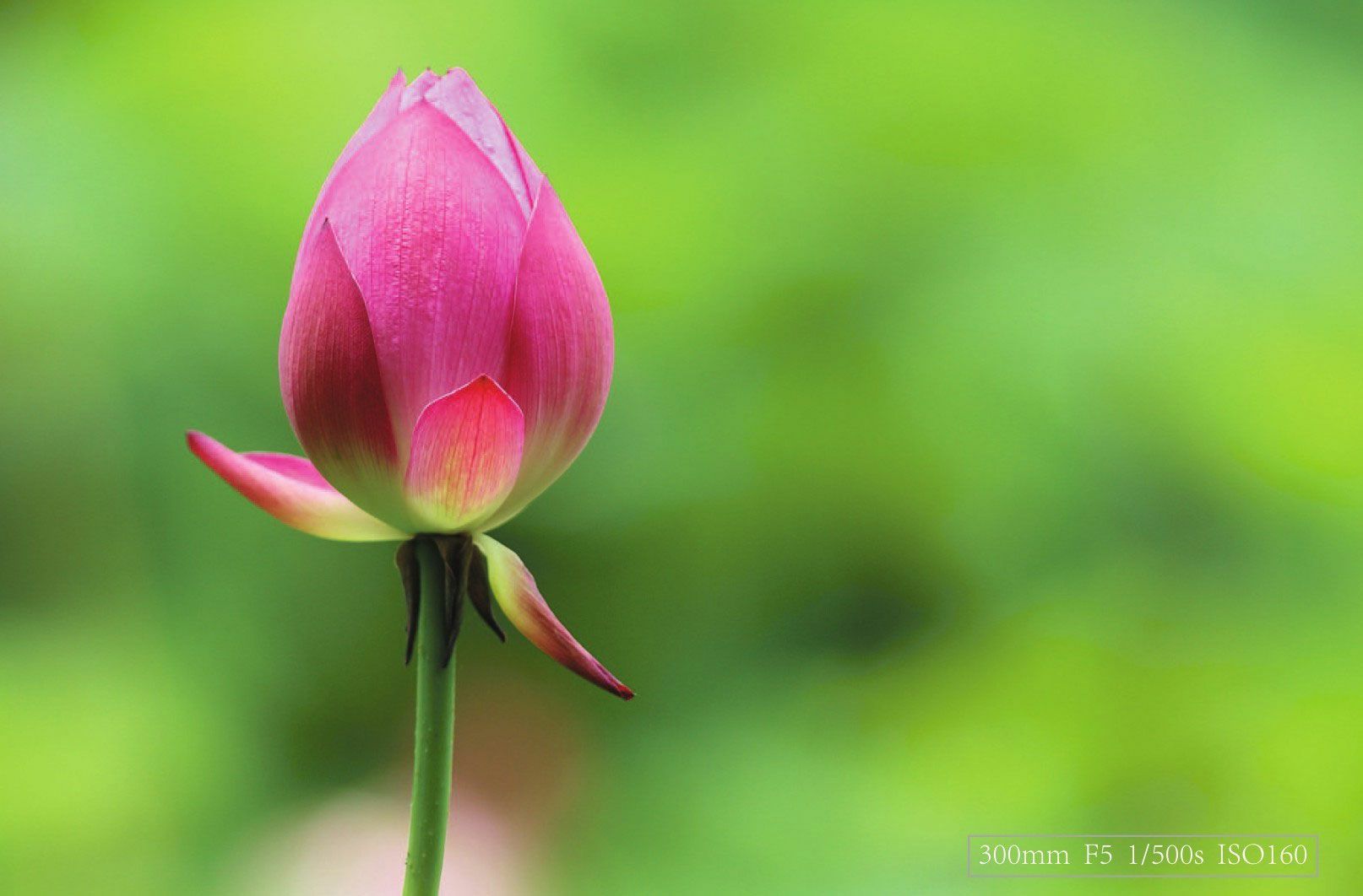 对着荷花对焦后,保持半按快门状态,向左平移进行构图,然