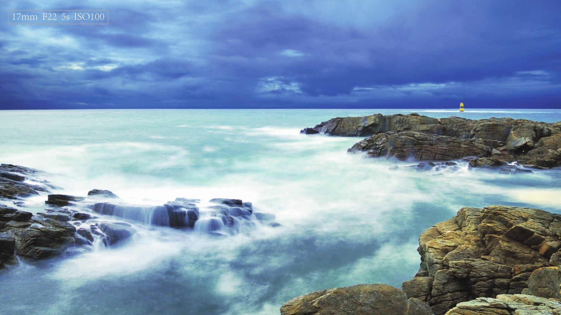 在使用三脚架拍摄长时间曝光的海景照片时,应该关掉镜头的