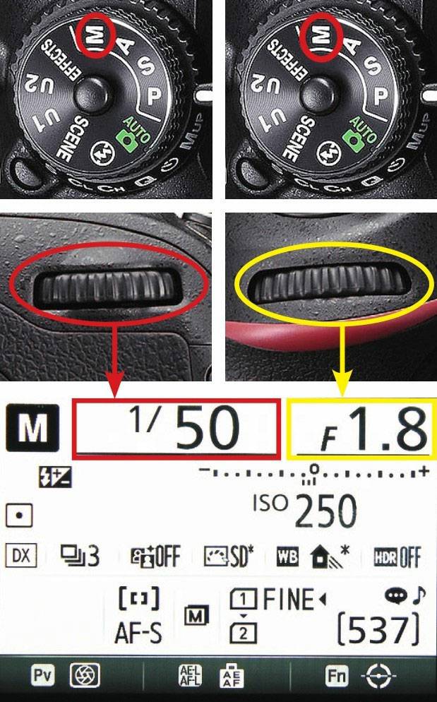 在M挡全手动曝光模式下,旋转主指令拨盘可调整快门速度值;旋转副指令拨盘可调整光圈值。在使用入门型相机时,转动指令拨盘调节快门速度值,按住光圈/曝光补偿按钮