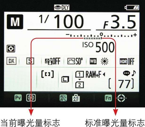 判断的依据就是当前曝光量标志游标的位置,当其位于标准曝光量标志的位置时,就能获得相对准确的曝光,可以通过改变光圈或快门速度,来左右移动当前曝光量标志。