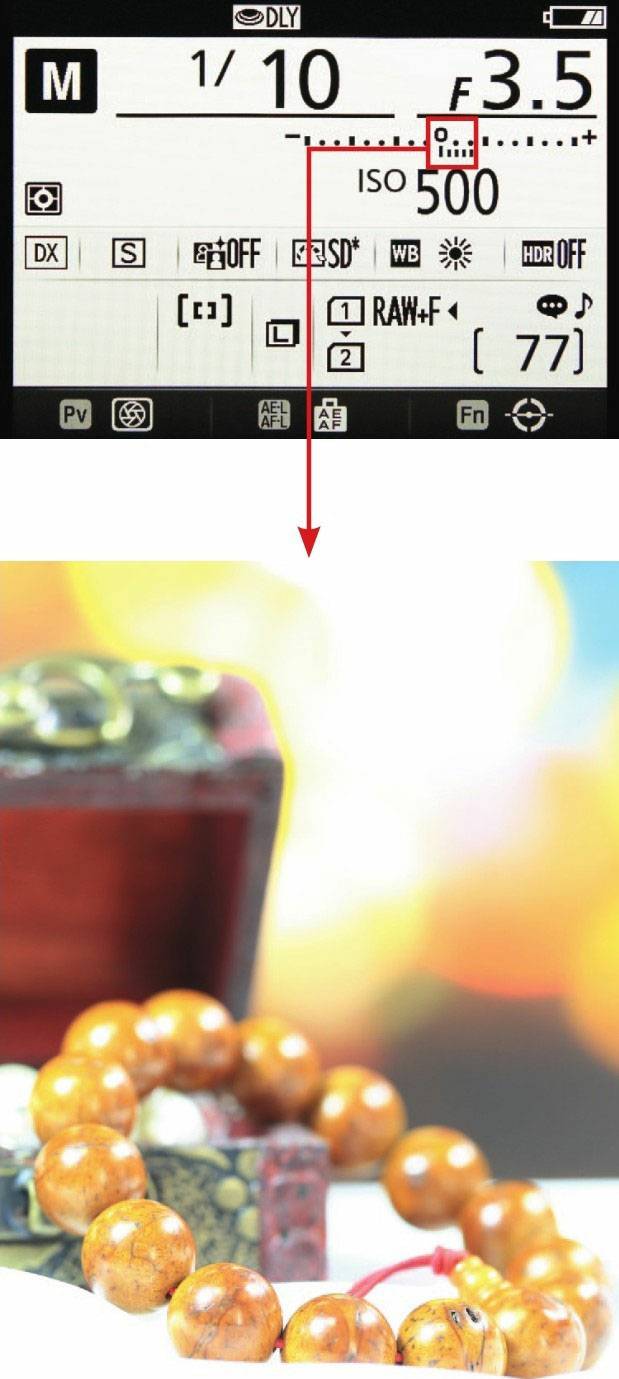 需要特别指出的是,如果希望拍出曝光不足的低调照片或曝光过度的高调照片,则需要通过调整光圈与快门速度,使当前曝光量游标处于正常曝光量标志的左侧或右侧,标志越向左侧偏移,曝光不足程度越高;反之,如果当前曝光量标志在正常曝光量标志的右侧,则当前照片处于曝光过度状态,且标志越向右侧偏移,曝光过度程度越高。