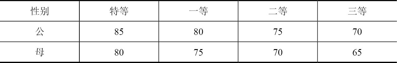 表2-2 中国荷斯坦奶牛外貌鉴定等级标准