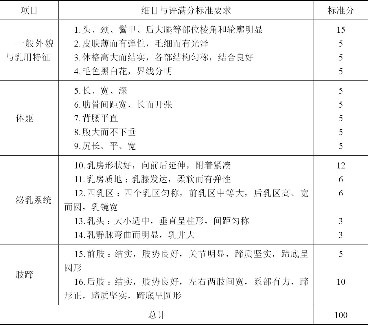 注:母奶牛外貌评定一般要求在产后第3~5个月进行。