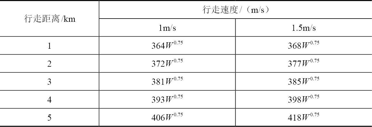 表2-4 水平行走的维持能量需要量(kJ/头·d)