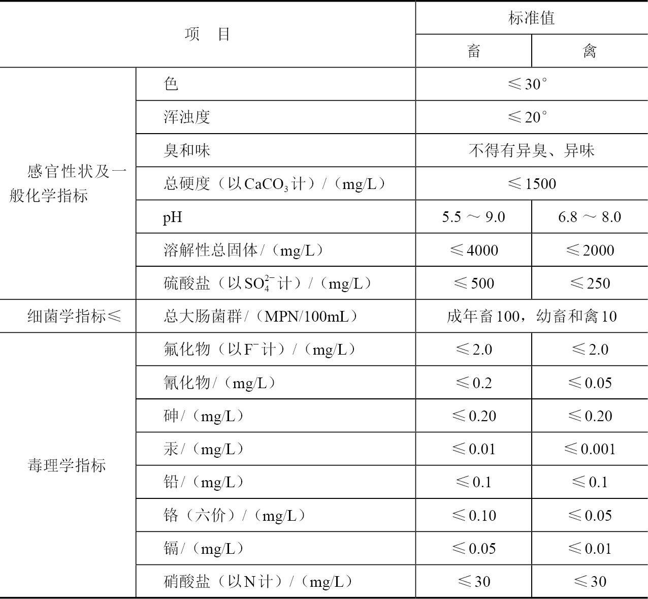 表1-1 畜禽饮用水水质标准(NY 5027—2008)