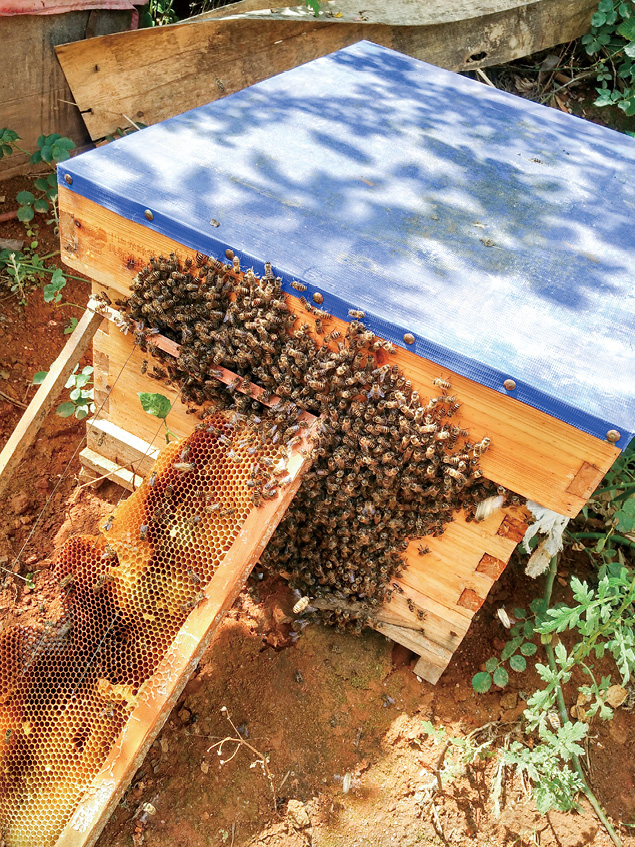(2)良好的饲养管理措施 蜂群进入繁殖期后,要及时扩大蜂巢,增加继箱,以充分发挥蜂王的产卵力和工蜂的哺育力;及时加入巢础造脾,及早进行王浆生产,让过剩的幼蜂参加造脾和泌浆等活动;适当进行蜂群调整,调换卵虫脾,把哺育能力过剩的蜂群中的幼蜂调到弱群中;注意给蜂群遮阳通风等,设置便利的采水地点;使强群和弱群交换位置,弱群得到强群的外勤力量而加强,强群的力量转到弱群而降低分蜂情绪;在分蜂季节,每隔5~7天检查蜂群一次,清除出现的王台。