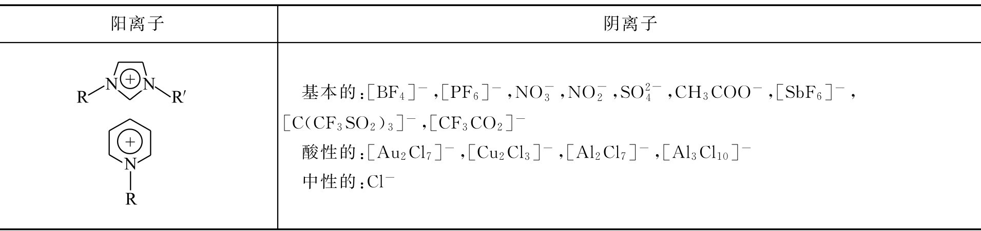 目前研究得较多的是由表2-2所示的两种阳离子和含氟阴离子构成的离子液体。