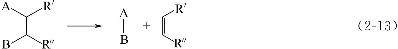 消除反应是从有机化合物分子中相邻的两个碳原子上除去两个原子或基团,生成不饱和化合物的反应,包括脱氢、脱卤素、脱卤化氢、脱水、脱醇、脱羧、脱氨以及一些降解反应等。按照被消去原子或基团的位置可分为 α -消除、 β -消除、 γ -消除等。其反应通式为: