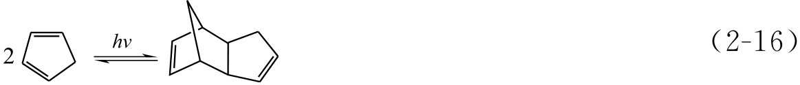 周环反应是不经过活性中间体,只经过环过渡态的一类协同反应,即在反应过程中新键的生成与旧键的断裂是同时发生的。它包括电环化反应、环加成反应、 σ 迁移反应等。周环反应是分子前线轨道控制的合成反应,为合成化学家提供了多种多样的反应途径。D-A反应、1,3-偶极环加成反应等都是典型的成键周环反应。例如: