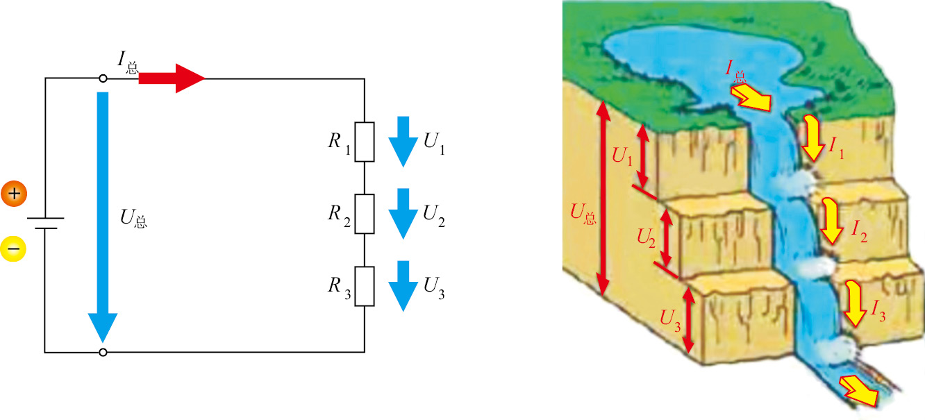 ③串联电路中各个压降的总和等于电路两端的总电压或电源电压。