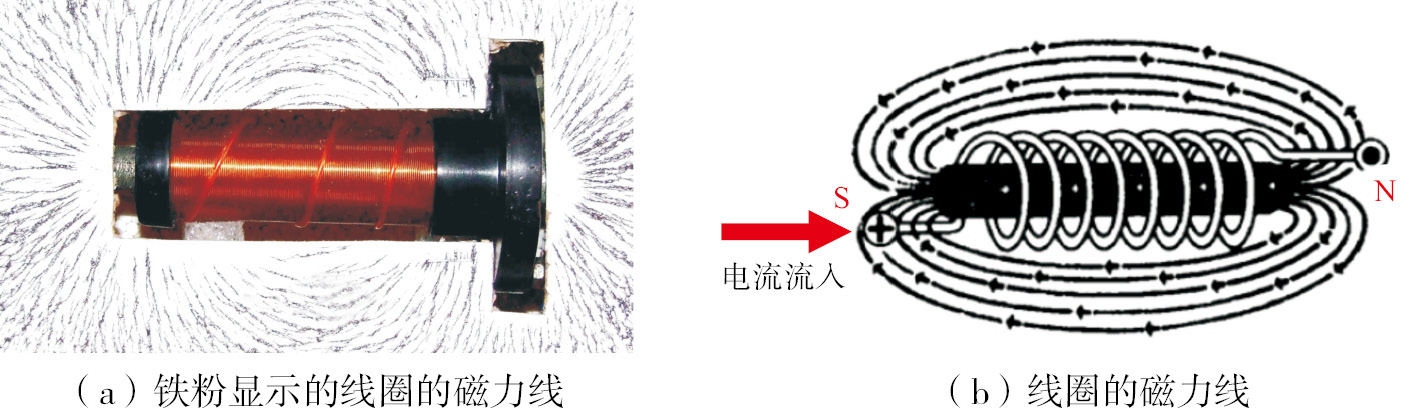 当一带电导线变成线圈时就会产生一个带N、S极的磁场, 如条形磁铁一样。