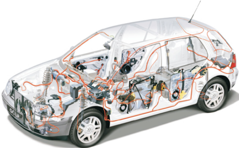 汽车电路和一般电路一样,各电器间采用串联、并联和混联方式;具有通路、断路和短路三种基本工作状态;电路图中各电器采用专门的符号或图框加文字的标注方法。但汽车电路又有自身的一些特点。