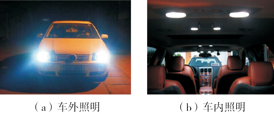 照明系统分为车内照明和车外照明(图1-138)。车内照明用来满足驾乘人员车内照明的需要,车外照明用来保障车辆在夜间、雨雾天气中行驶的安全。信号系统的作用是告示行人、车辆引起注意,指示车辆的位置、运行状态等,以提高汽车的安全性。