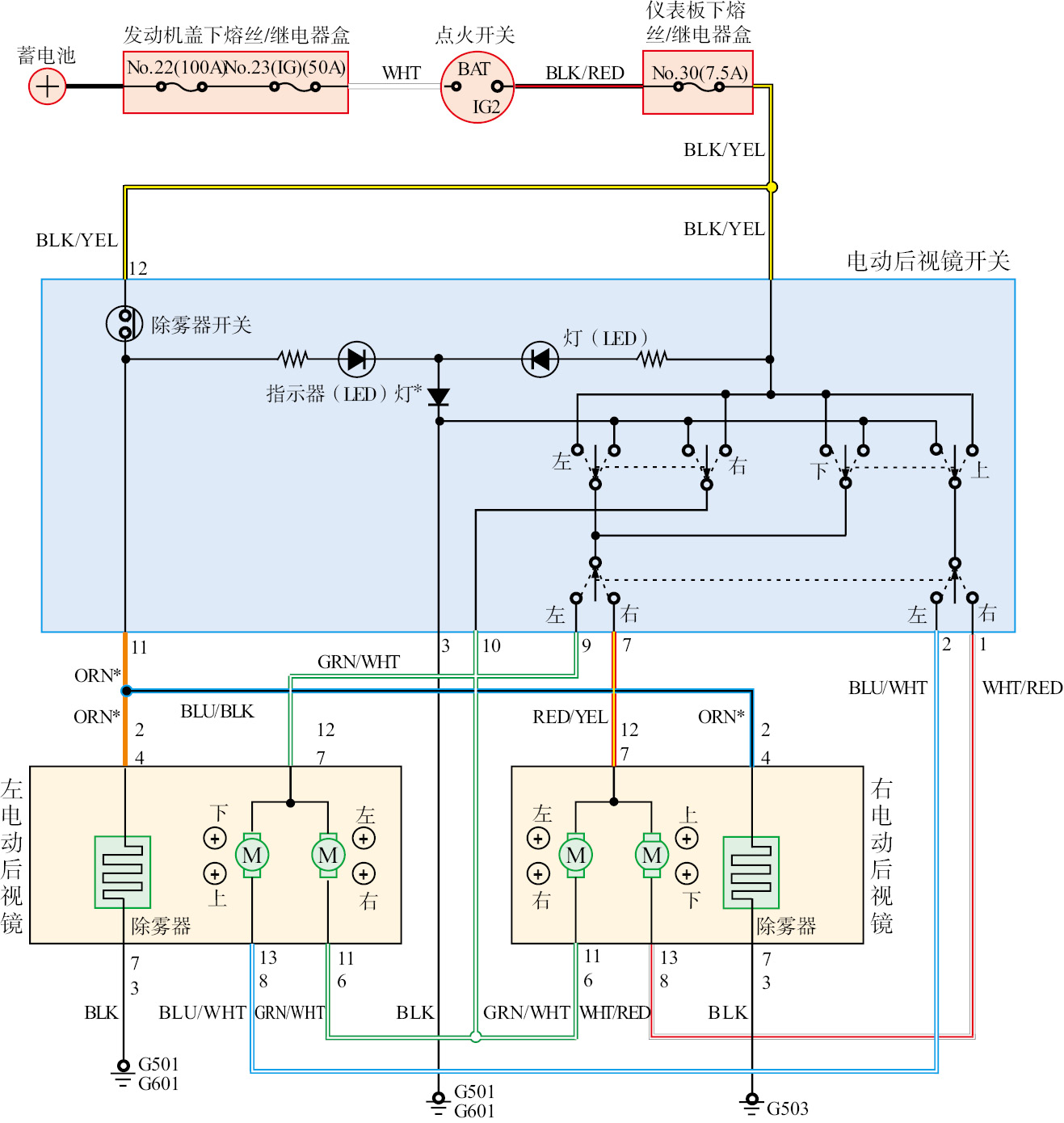 图1-150 本田雅阁电动后视镜电路