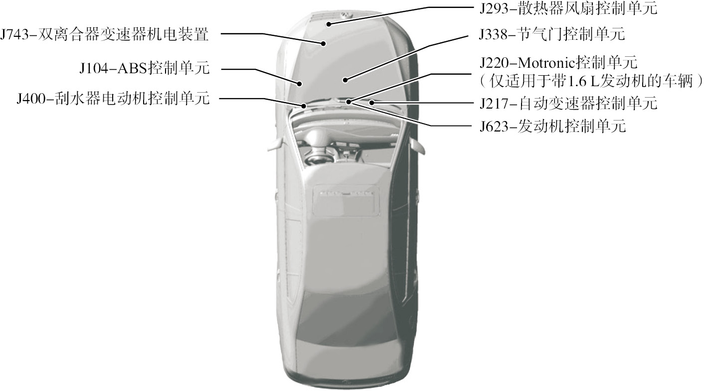 图1-156 新朗逸轿车发动机舱中的控制单元位置图