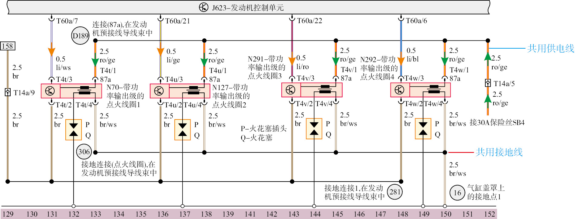 图1-149 全新帕萨特点火线圈电路