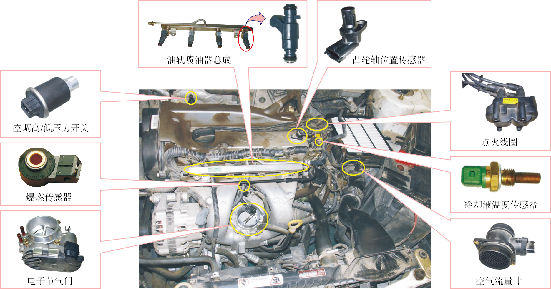 (3)熟悉元器件的作用 汽车电路中有许多开关、继电器、传感器、执行器及电控单元(ECU)。