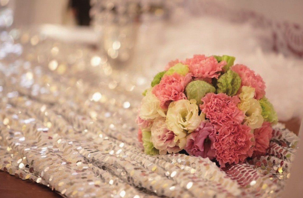 为了增加婚礼或热烈欢快,或温馨浪漫的气氛,用鲜花进行各种装饰是不可或缺的。主要包括新娘全身的花卉装饰,如头花与肩花、腰花、新娘捧花等;新郎与宾客胸前佩戴的胸花;婚车以及婚礼不同场合的各种装饰,如入口处、接待处、宴会餐桌、餐具、甚至蛋糕等食品上的鲜花装饰。婚礼花饰是各种商务插花中从花材选择、造型设计到制作都最为讲究的一种综合花艺设计。从形式上除了小型的胸花、头花、肩花、腕花等,还有花束、花篮、桌花等各种类型。新娘用花的花色和造型要根据新娘的身材、脸型、发型、肤色、婚纱的色彩及造型等选择。新郎及宾客的花饰和婚车用花也都要与新娘用花相协调,达到整体上主次分明,形式优美,相得益彰的效果。