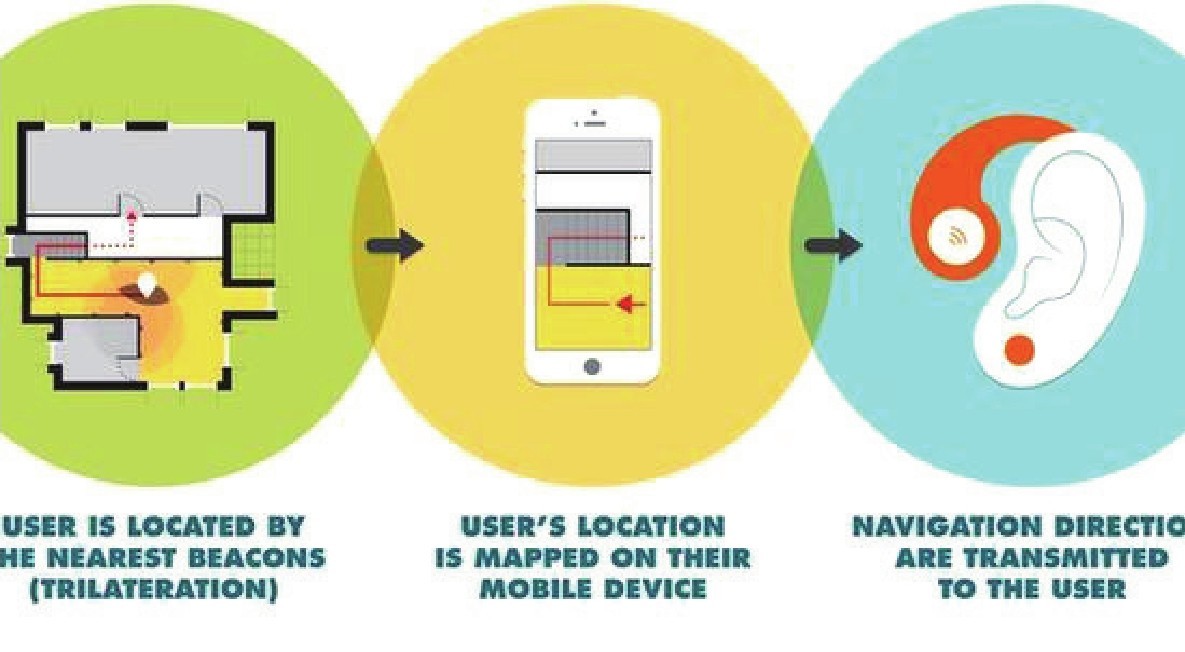 也就是说,当视障人士走进地铁站,地铁站内部署的蓝牙beacons就能确定他们的位置,并向他们的智能手机传输导航信号,导航的信息可以通过骨传导耳机传送给他们。当接近自动扶梯或检票闸口,系统会自动提醒用户。