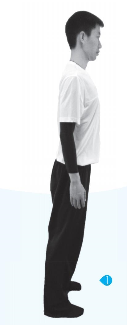 双腿开立,头慢慢左转,至极限位置保持3~5个呼吸;再慢慢右转,至极限位置保持3~5个呼吸。