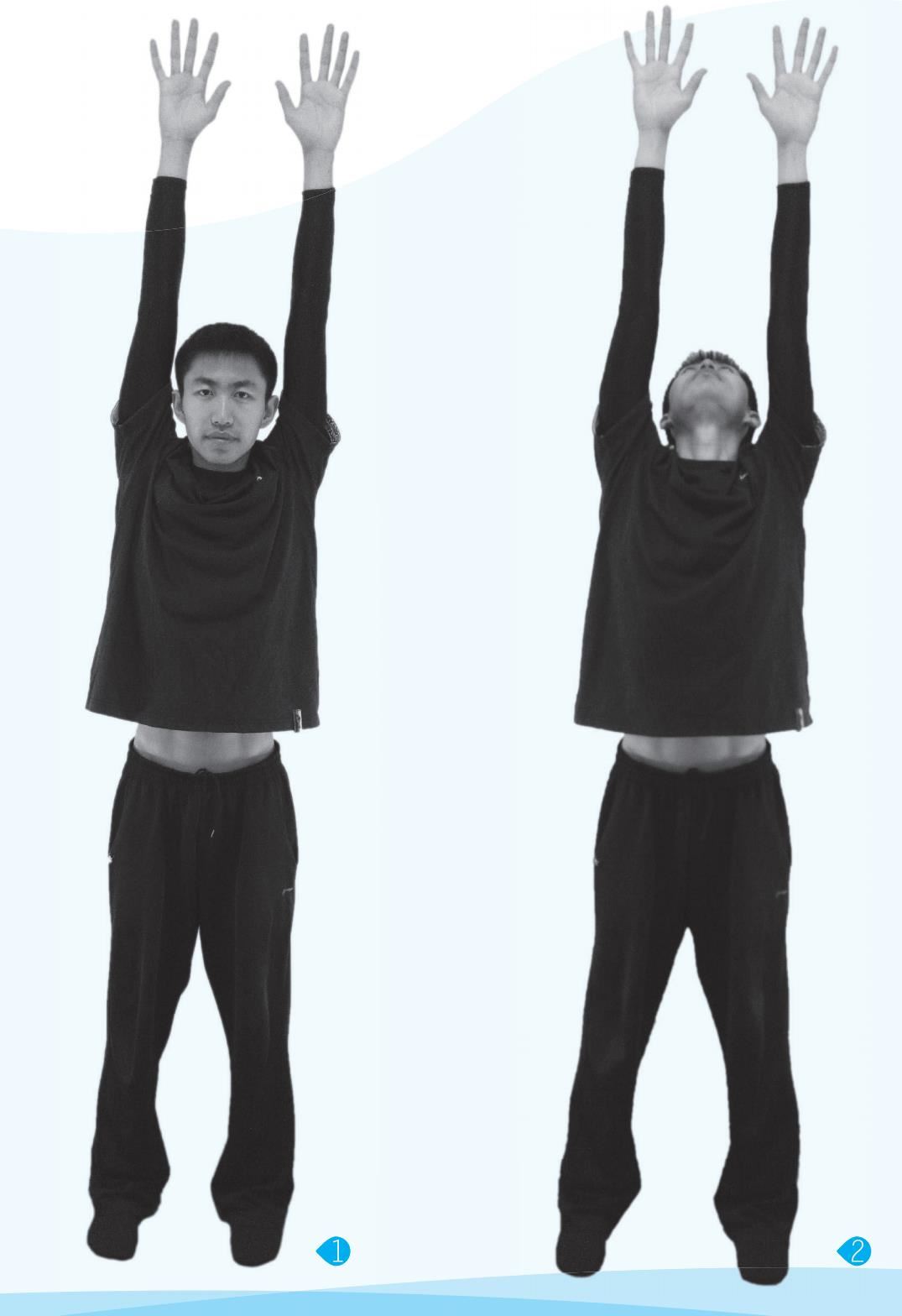 慢慢抬头,目视天空方向,伸展双臂,极限位置保持3~5个呼吸,再慢慢恢复到初始姿态。