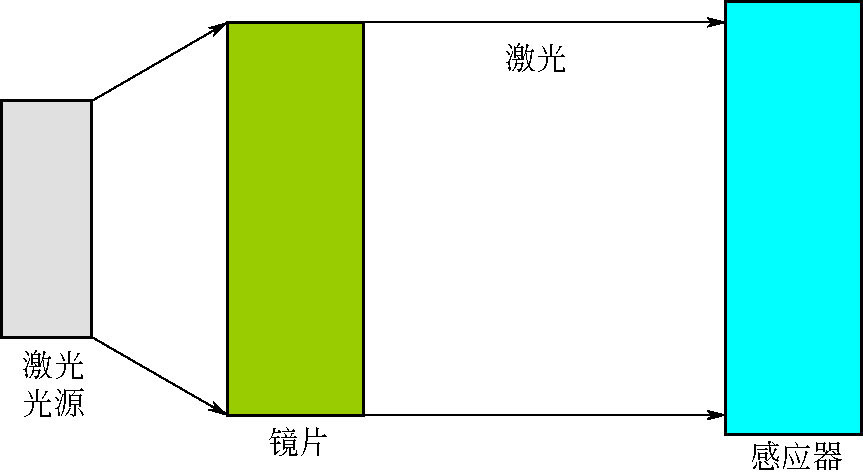 ③ 激光测距传感器 它是利用激光技术进行测量的传感器,其组成和工作原理与红外线测距传感器的工作原理差不多。激光测距传感器的最大优点是测量速度快且测量精度高。此外,激光测距传感器的抗光电干扰能力强。激光测距传感器及内部结构简图分别如图3-53和图3-54所示。