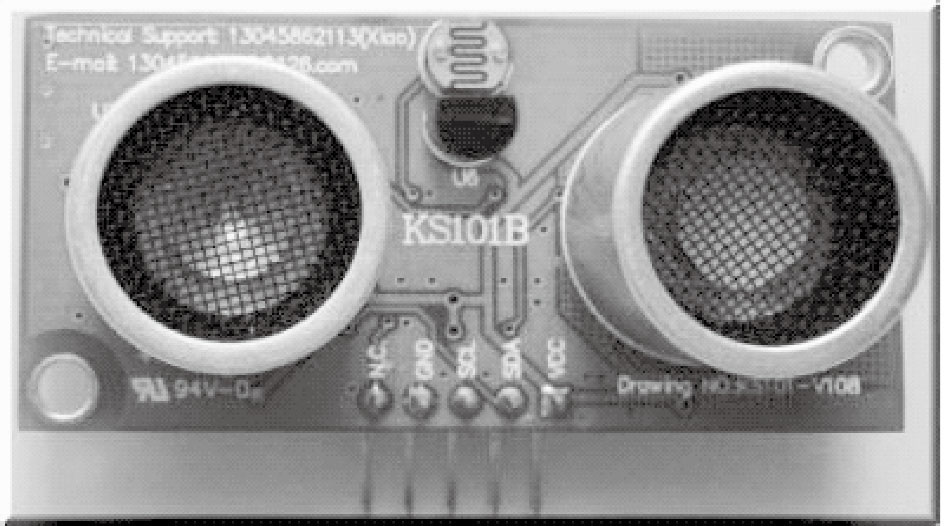 ① 超声波测距传感器 超声波测距原理是先发送一超声波脉冲,当超声波碰到障碍物后会反射回来,向控制器返回一个脉冲,根据声音在空气中的速度,通过测量发射超声波和接收来自障碍物回声的时间差,从而计算出到障碍物的距离。超声波测距传感器如图3-51所示。